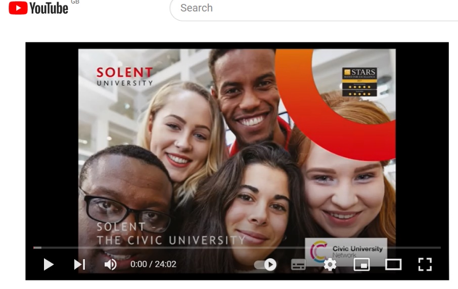 The University soft launched its Civic Charter in 2019 and formalised it as a formal Civic Agreement in 2021. A series of open forum events was hosted by our Vice-Chancellor throughout the Pandemic, enabling us to focus our future approach to communities’ impact. During this period Solent’s Vice-Chancellor Chaired Southampton Connect, bringing together key civic stakeholders to formulate strategic priorities for the region. This enabled the University to develop an agreement which would see the University focus and enhance its activity. The commitments are set out under each of the four thematic areas of our Civic Charter as outlined in the following video.