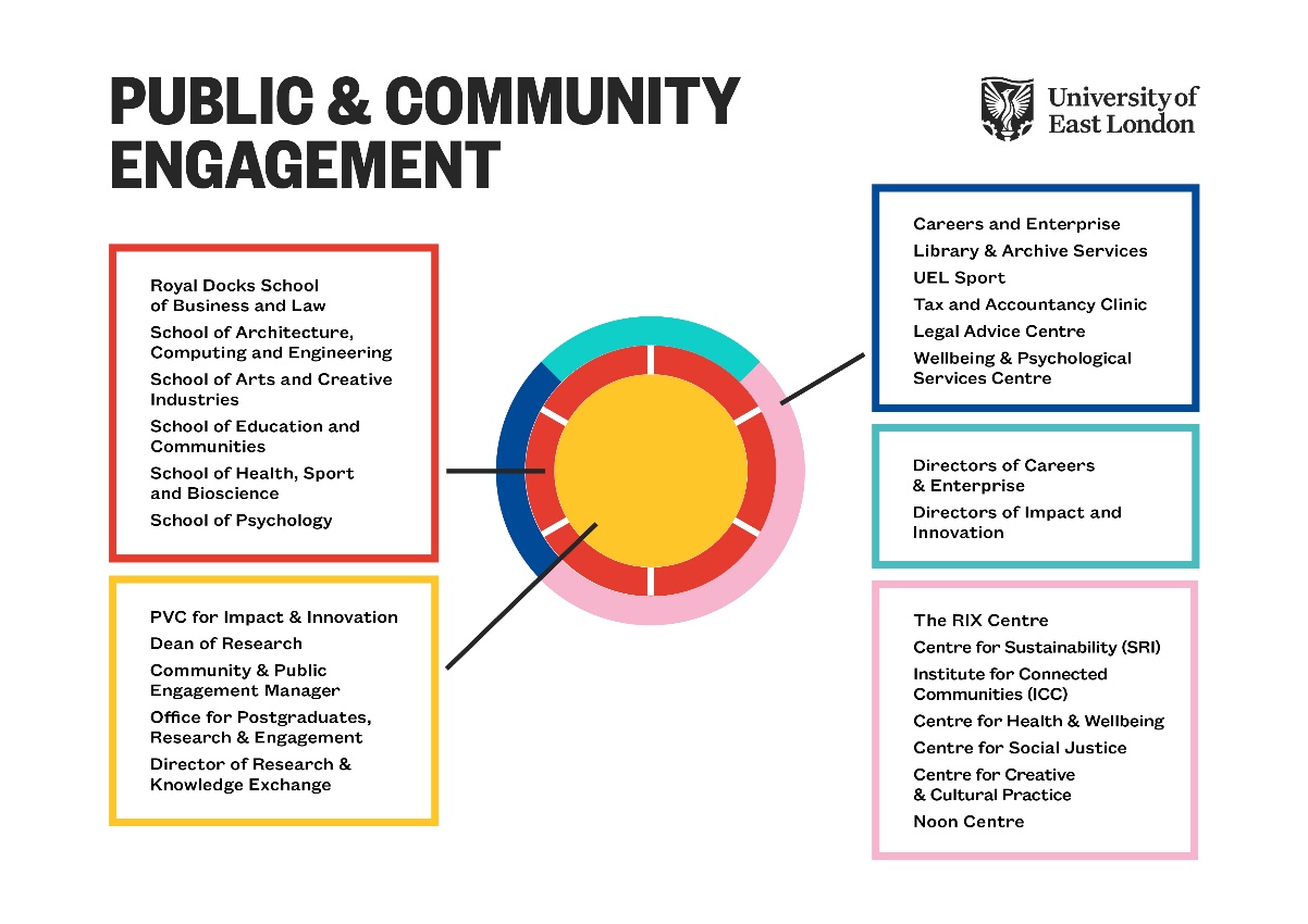 Engagement at UEL takes place across all academic schools, research centres and institutes and community clinics. Careers and Student Enterprise through volunteering and mentoring programmes, Outreach, UEL Sports and our Library Archive all conduct engagement activity.