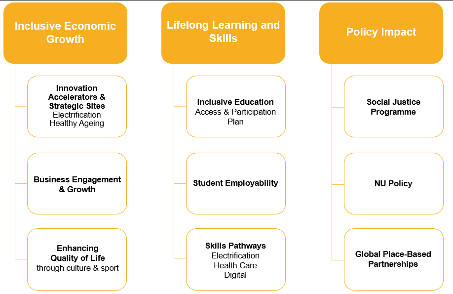 The University is, therefore, a large driver of the economy in the region and we take this responsibility very seriously. In addition to the core educational role of any university, providing talent for regional employers, we have developed a strategy designed to: