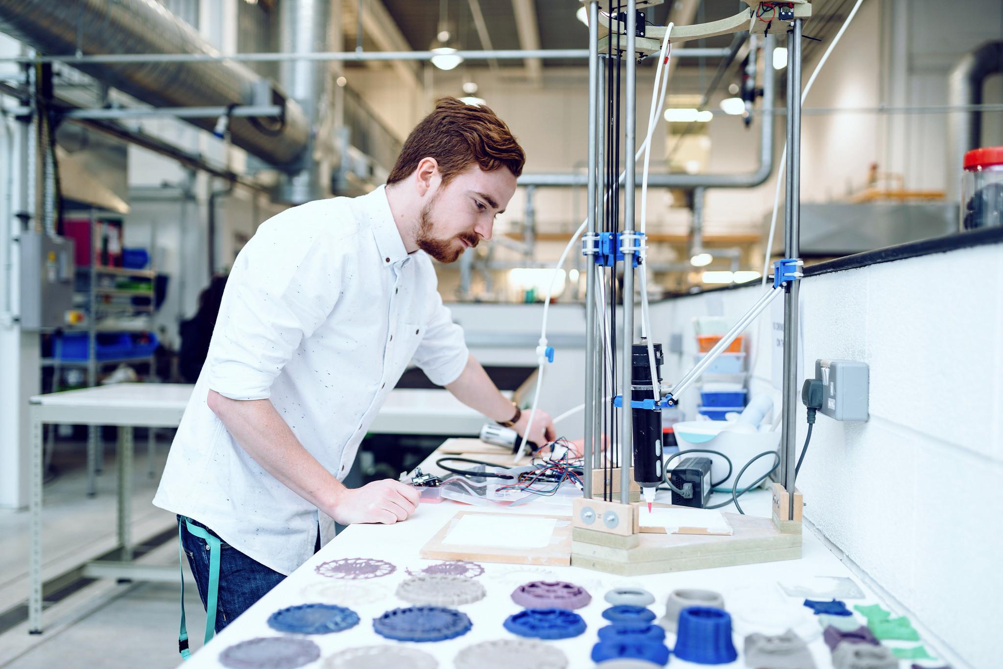 Our Fab Lab is part of a network of over 1,000 official Labs worldwide. It is a space for innovation and research encouraging investigation and material exploration for academics, students, the public and SMEs through digital manufacturing and fabrication processes.