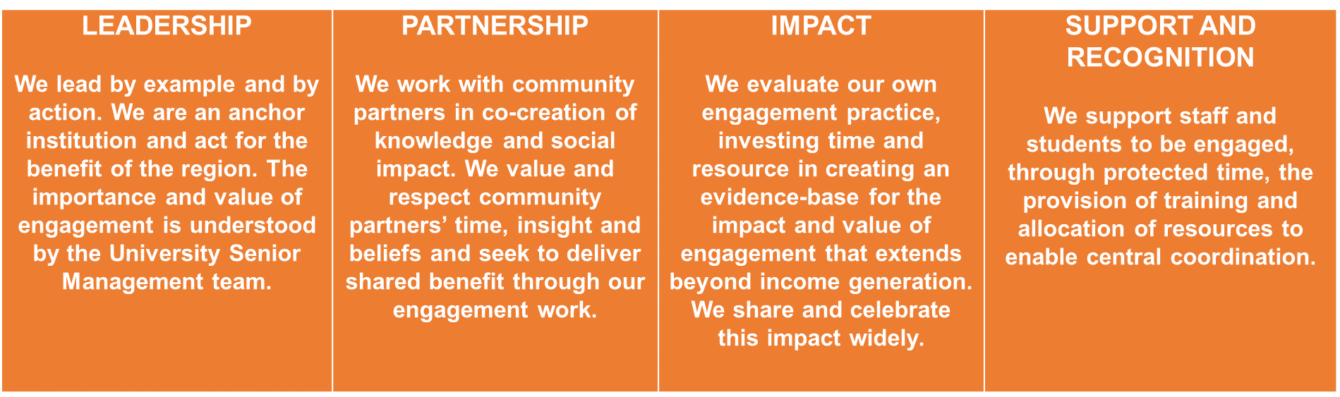To engage and collaborate with stakeholders in the creation, delivery, communication and impact of our research as a civic university.