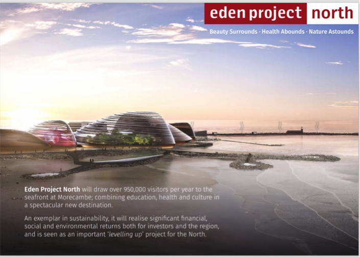We are the lead academic partner with Eden Project International on the development of ‘Eden Project North’ in Morecambe. This will be an internationally significant, research-led visitor attraction (over 1M expected annually) and platform for public engagement with science focused on health and the environment. It represents a unique opportunity to act as an international technology testbed for clean growth innovations and will have a significant impact on the levelling-up agenda through regeneration and economic growth – for example it is projected to generate over 1,000 jobs in the regional supply chain alone.