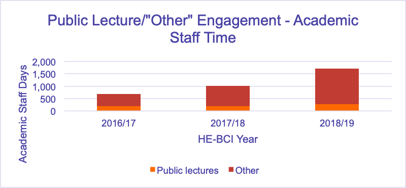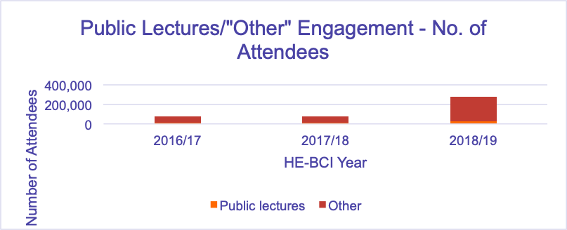 * The graphs show data reported in Table 5 of the HEBCI Survey which included conferences, festivals, on-line courses, media, masterclasses and schools engagement.